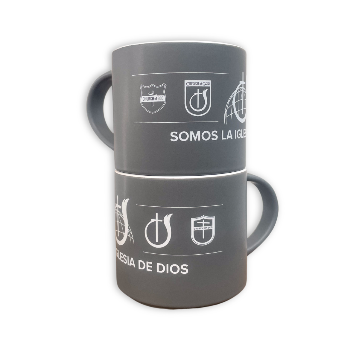 This limited edition mug featuring the history of the Church of God logos is stackable!